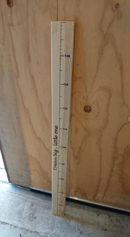 Het is een eikenhouten bord, ongeveer 20 cm breed bij 60 cm hoog, geimpregneerd en gebeitst met schuur en tuinhuisbeits. Deze hangt nu mooi bij hun naast de deur! (en ik ben weer een stapje dichterbij mijn carving cursus)
