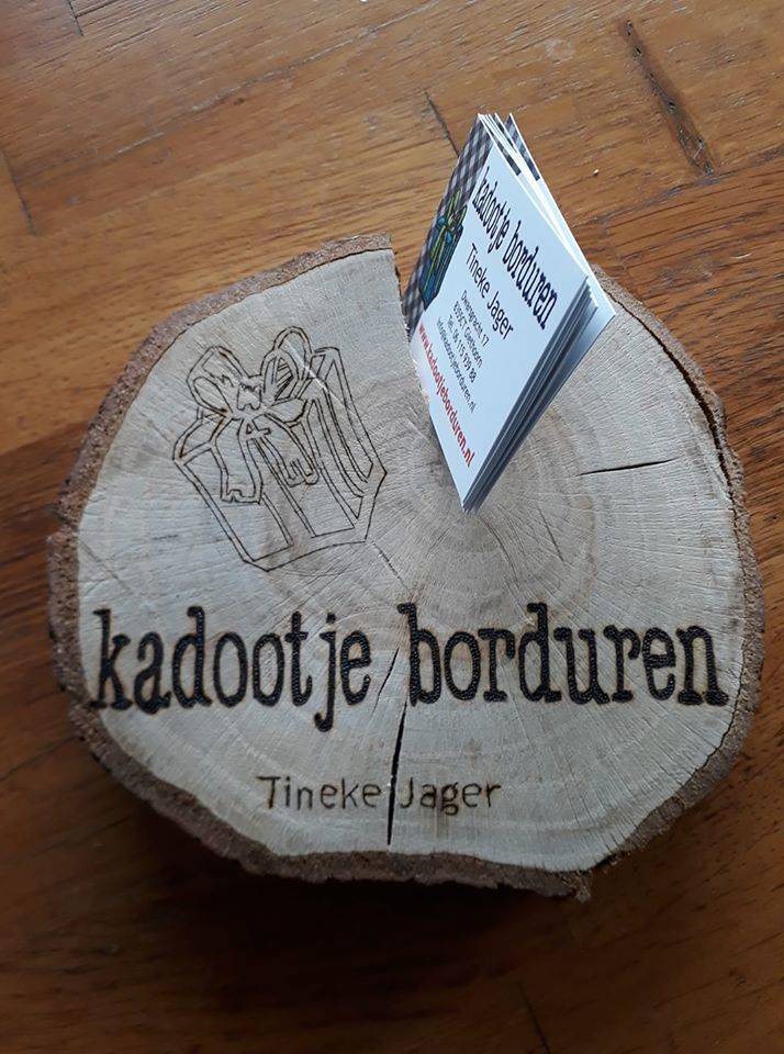 Ik heb ook bij haar mijn bedrijfskleding besteld en als dank daarvoor, als verassing heb ik ook voor haar een schijf gebrand met haar bedrijfsnaam zodat ze die op markten als visitekaarthouder kan gebruiken. Zeker een aanrader!