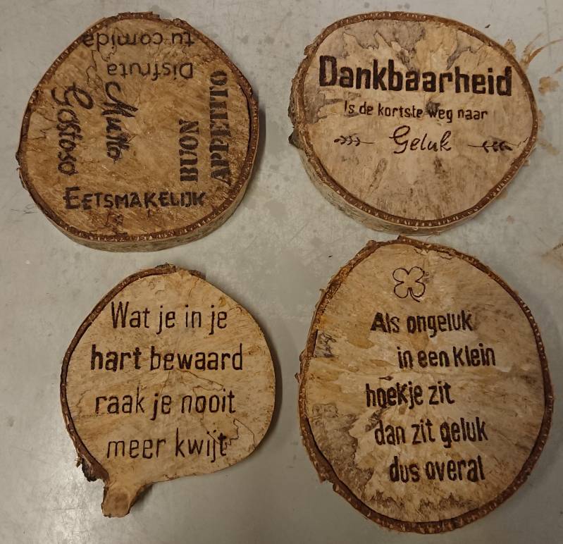 - ``ik heb alles wel op een rijtje maar niet in de juiste volgorde`` op losse berken of balkjes maken